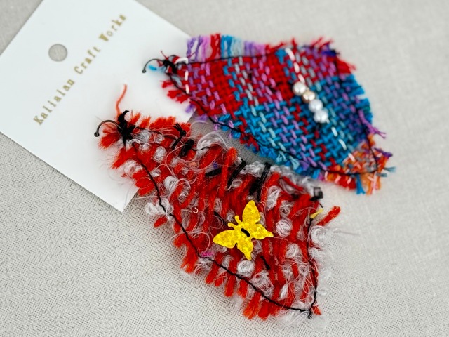 YURI Studio が手がける、タイヤル族の織りの技術を使ったオリジナルピアス 鮮やかな糸が織りなすカラフルな表情は、一つひとつが異なる一点ものです 軽やかな着け心地で、耳元からスタイルに個性と華やかさを添えてくれます 民族の手仕事とモダンデザインが融合したアクセサリーを、ぜひ日常のコーディネートに! *アレルギー対策がされている金属では無いことをご了承ください *ハンドメイド作品のため、機械のように完璧ではありません