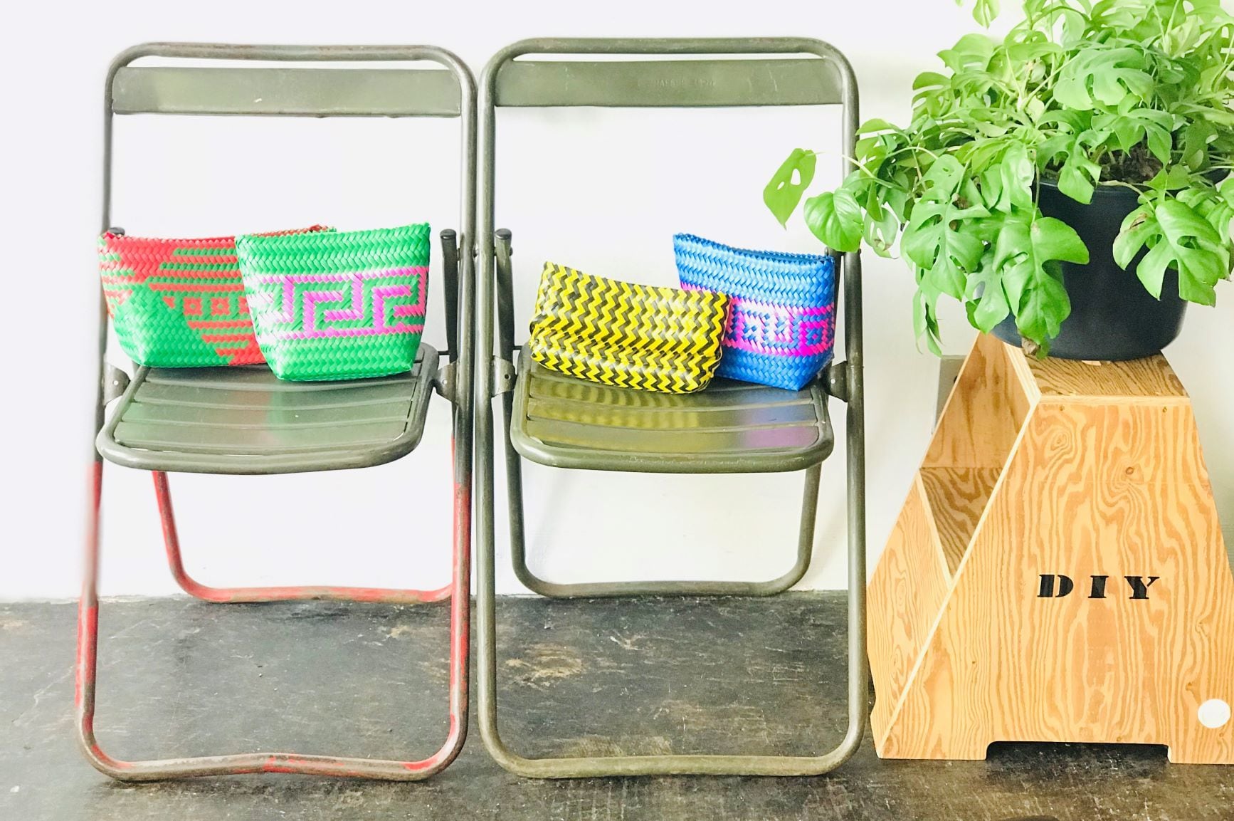 プラスチックのテープで編まれており、軽くて丈夫です。